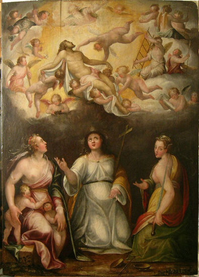 - Gloire du Christ et allégories de vertus 118,7 x 85,2 cm XVIème